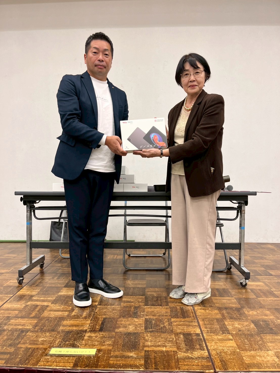 「茨城県 令和7年度茨城県企業連携型NPO活動支援事業」にて、石岡市の「国際交流団体 フレンドシップいしおか」様(会長 小松崎 一枝様)にタブレット端末10台を寄贈させていただきました。